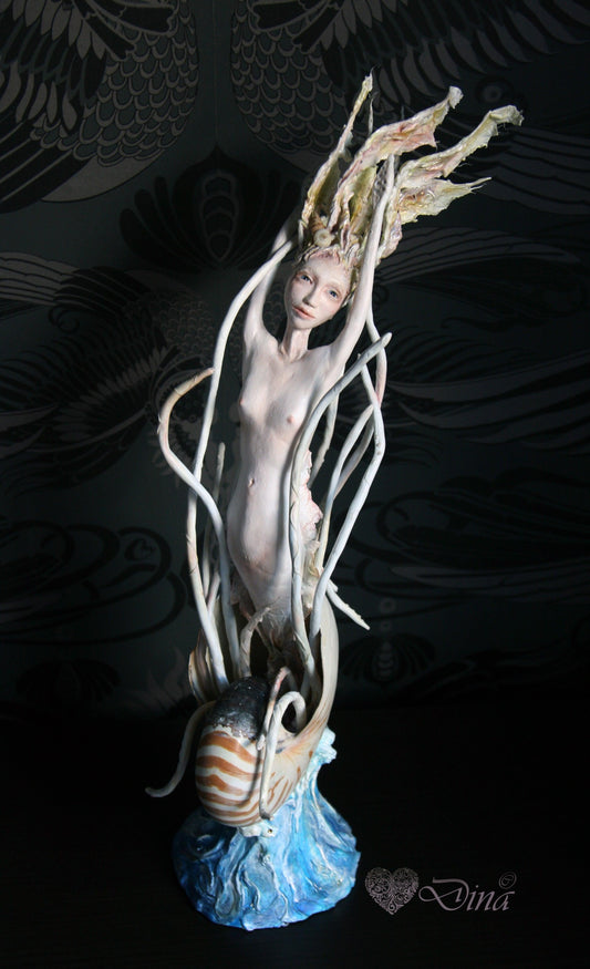 SOLD - 'Just living in a shell' – OOAK art doll by Dina