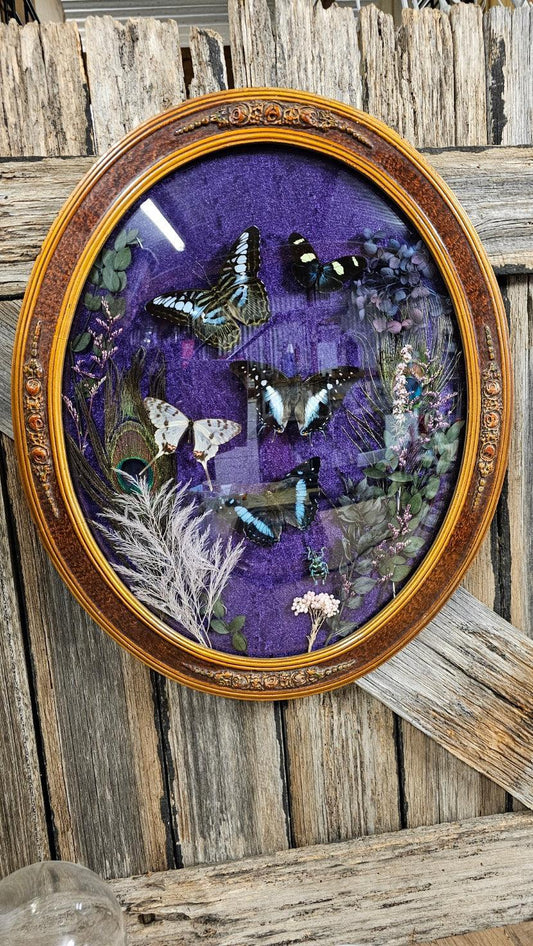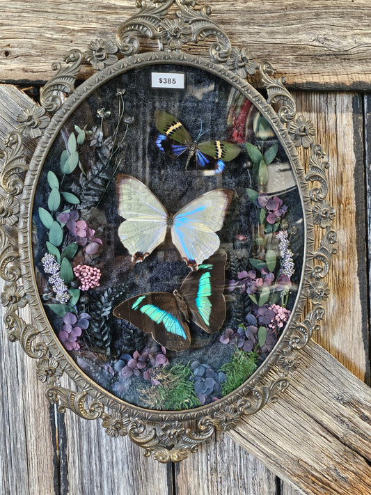 Collect beautiful Victorian-gothic inspired butterfly art encapsulated in unique vintage frames and glass domes. These are delightful decor statement pieces for your home.