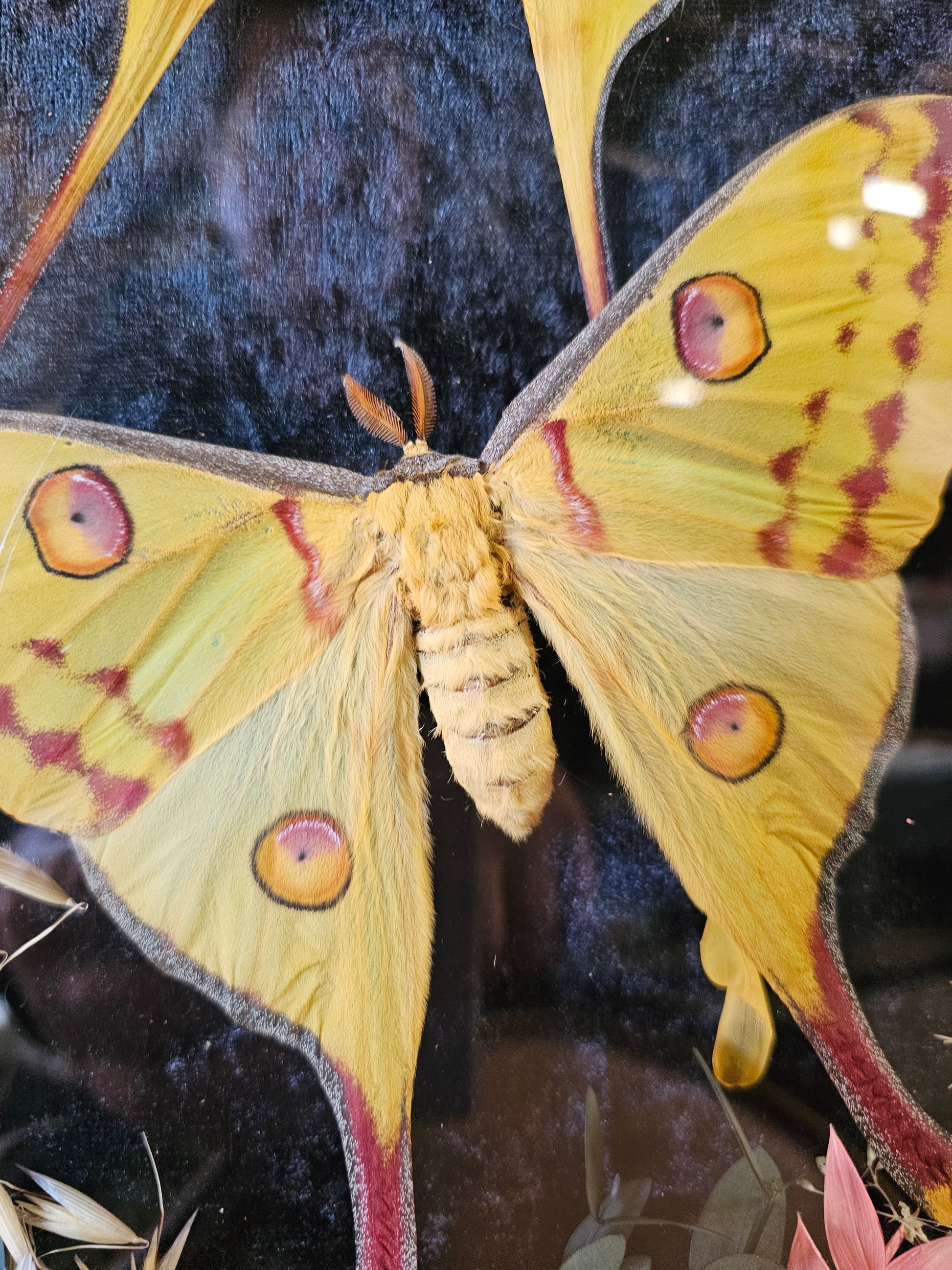 Butterflies and moths are from approved butterfly farms .. everything is responsibly sourced and nothing is killed for this art work.