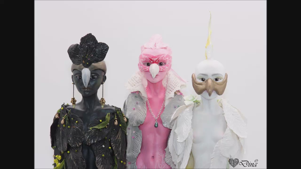 ‘Cocky Girl’ is an Australian Sulphur-crested cockatoo that frequents the Victorian east coast and other parts of Australia. A beloved larrakin in our bushland, I have adorned this girl with her signature crest and hand-made clay feathers, which are beaded and adorned with miniature clay flowers. Her cape is colored fabric and her body is the same as all the runway birds, a unique sculpt cast in resin.