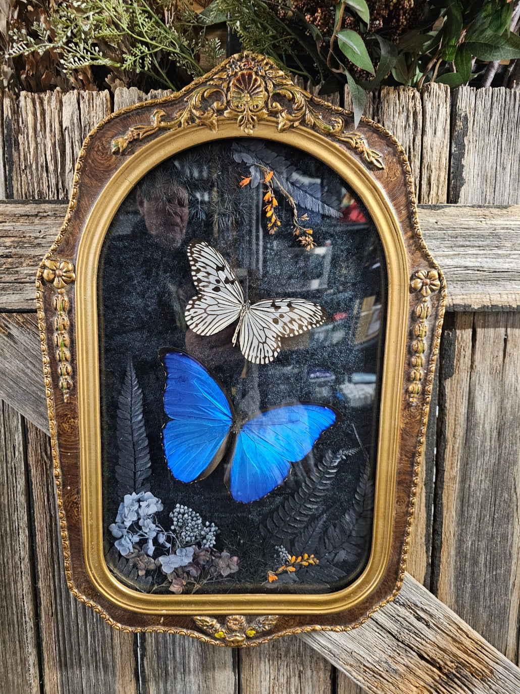 Frame vintage - Victorian Gothic bubble frame with Giant Blue Morpho butterfly