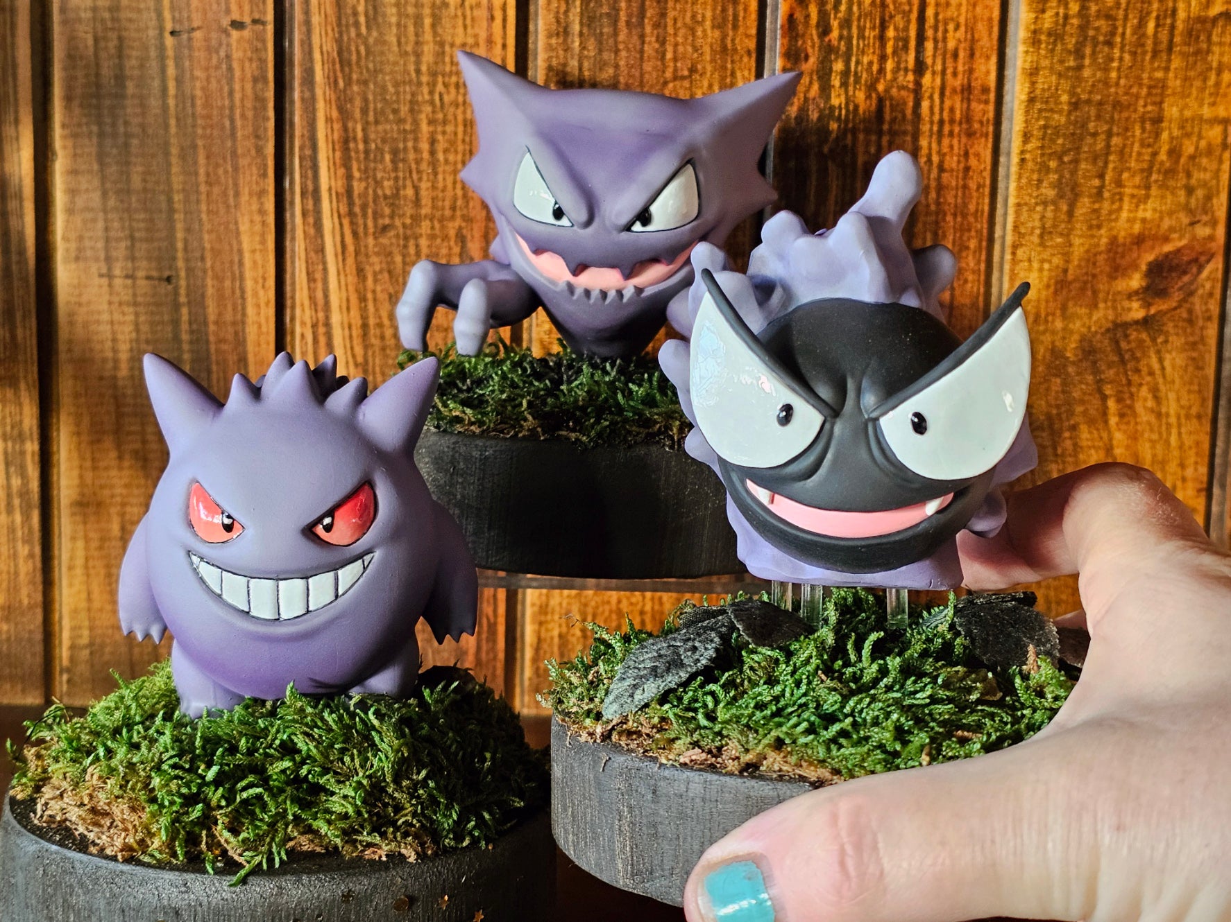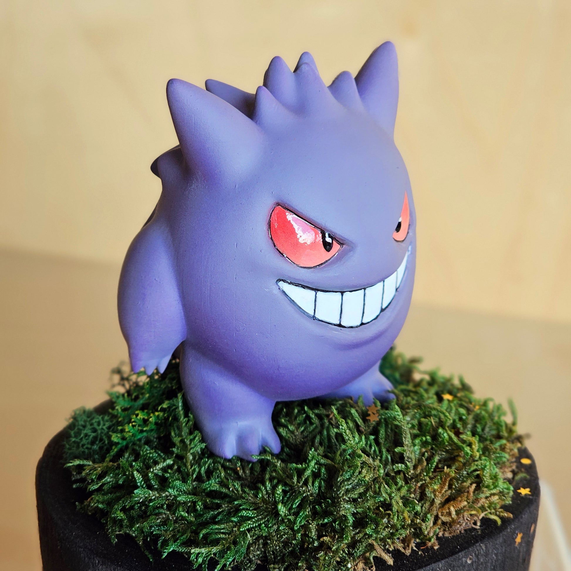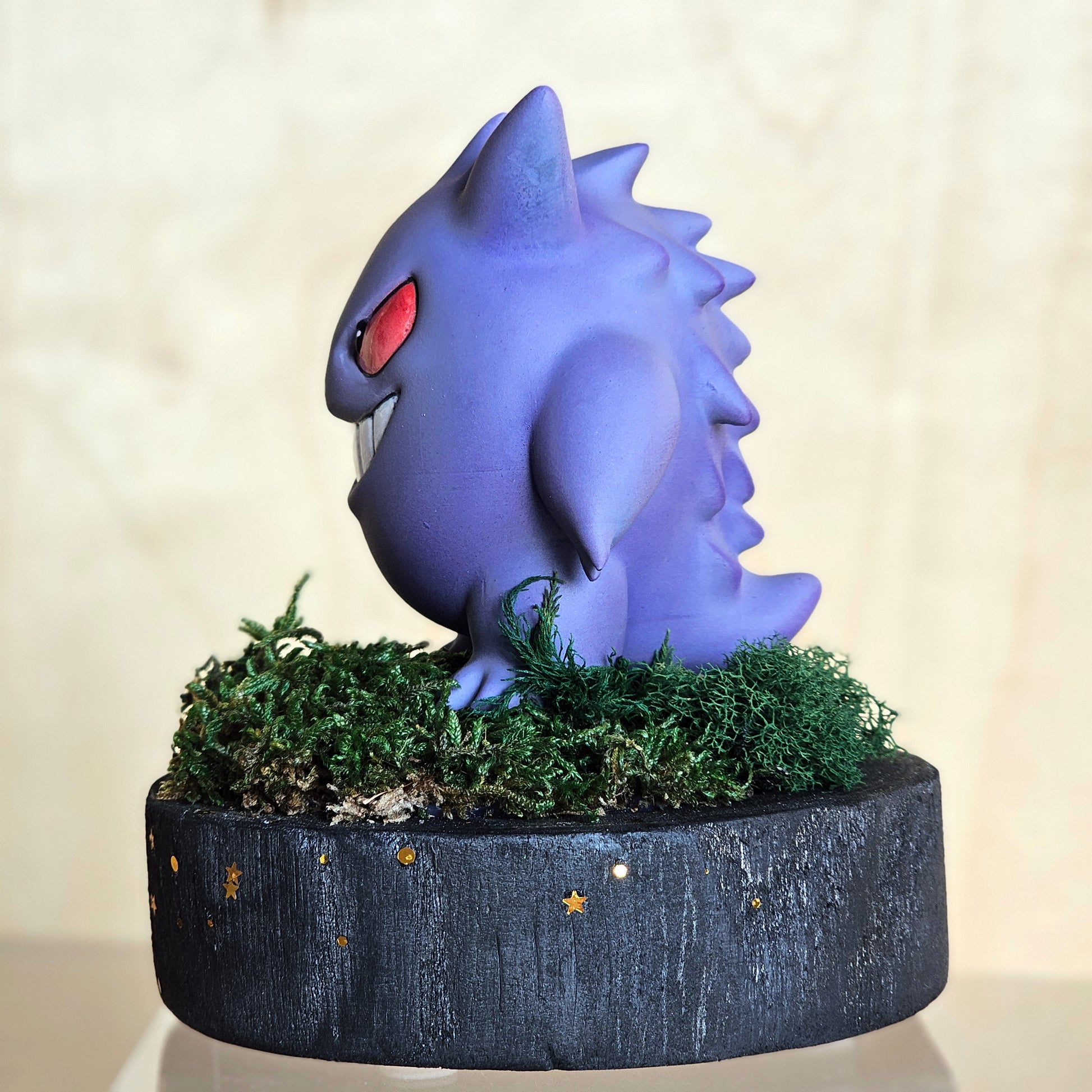 Gengar is mounted on a blackened timber base covered in real preserved moss and twinkling stars bringing him to life for your home.
